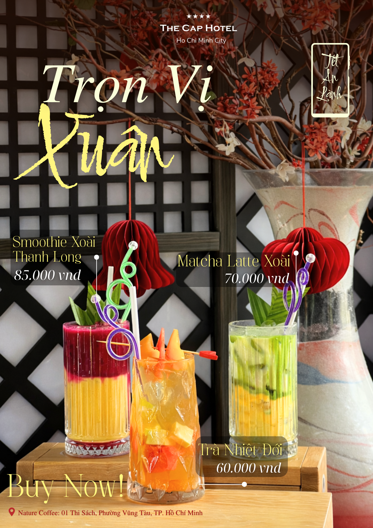 Spring arrives gently in every cooling sip, where the vibrant flavors of fresh fruits blend harmoniously with the calm and peaceful spirit of the Lunar New Year. A refined choice to begin the year with softness, balance, and quiet joy.
