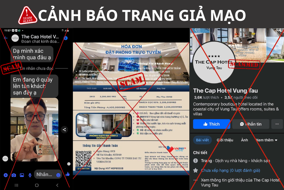 Currently, there are several fake Facebook pages impersonating The Cap Hotel by using our name and images for fraudulent purposes, including collecting personal information or requesting unauthorized payments.